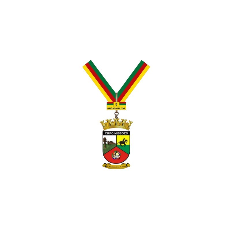 Art. 5º A Comenda “Sepé Tiaraju” será cunhada com revestimento em bronze, com as dimensões de 90mm de altura por 60mm de largura, apresentando no anverso o brasão do CRPO/Missões, tudo em relevo e vazado, pendente de uma fita achamalotada em três linhas alternadas de igual largura, nas cores VERDE, VERMELHA e AMARELA, todas medindo 35mm de largura total (ANEXO A).